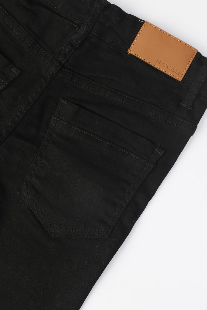 Jeans with an adjustable inner waistband and front button fastening. Front pockets and rear patch pockets.